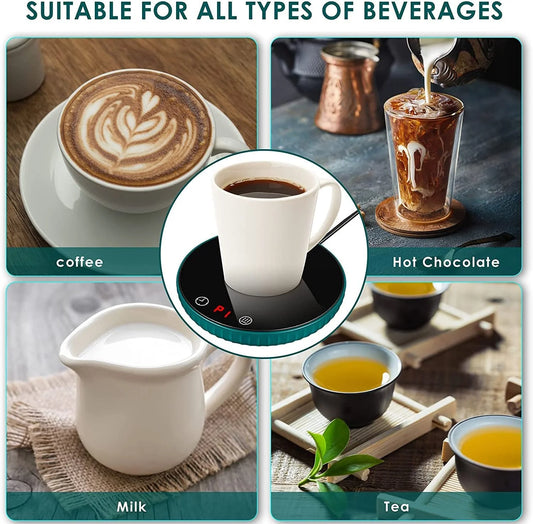 Coffee Mug Warmer, Smart Cup Warmer for Desk Auto Shut off & Timing, Electric Beverage Warmer with 2 Temperature Settings, Wireless Warmer Heating Plate for Tea, Water, Cocoa, Milk
