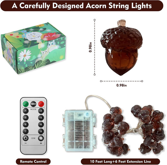Acorn String Lights Thanksgiving Decorations Fall Lights Forest Décor Fairy Decorative Lights 30 Leds 10Ft Battery Powered with Remote for Bedroom Farmhouse Home Holiday Thanksgiving Decoration